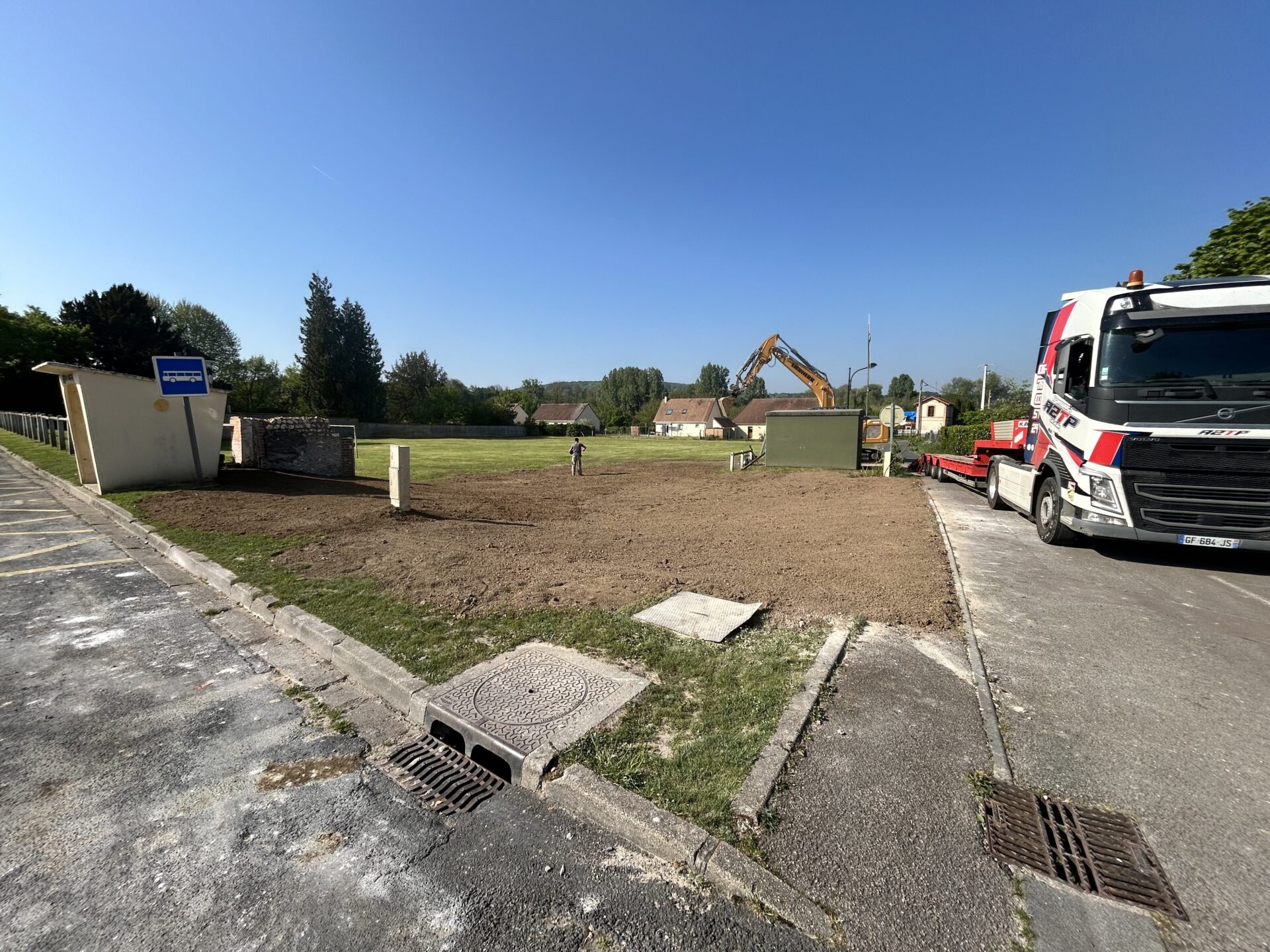 Terrassement et mise en sécurité du chantier. Chaussée est refaite à l’identique !